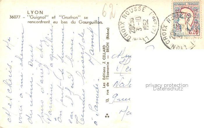 13529457 Lyon France Guignol et Gnafron se rencontrent au bas du Gourguillon Künstlerkarte KatCode 11170069169123