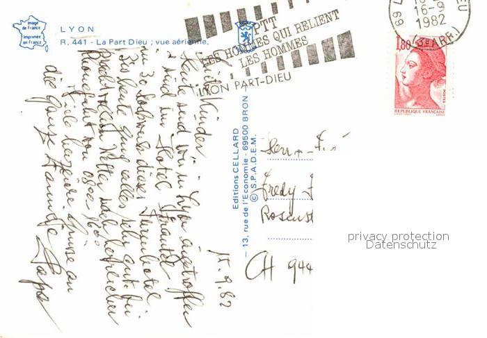 12709487 carte postale Lyon France La Part Dieu vue aerienne postalisch gelaufen Erhaltung siehe scans [FriedD77] KatCode: 11170069169123