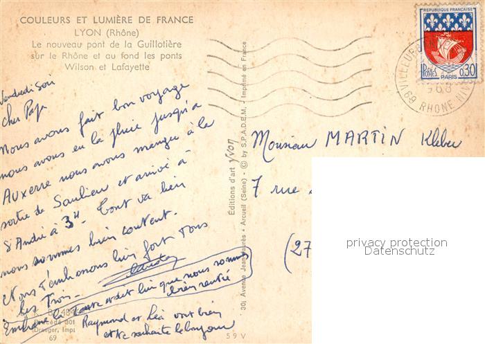 13513598 carte postale Lyon France Le nouveau pont de la Guillotiere sur le Rhone et au fond les ponts Wilson et Lafayette postalisch gelaufen Erhaltung siehe scans [WerneD78] KatCode: 11170069169123