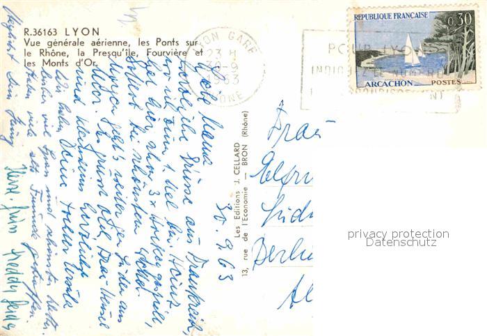 12836213 Lyon France Les ponts sur le Rhone Presqu_ile Fourviere et les Monts d_Or vue aerienne KatCode 11170069169123