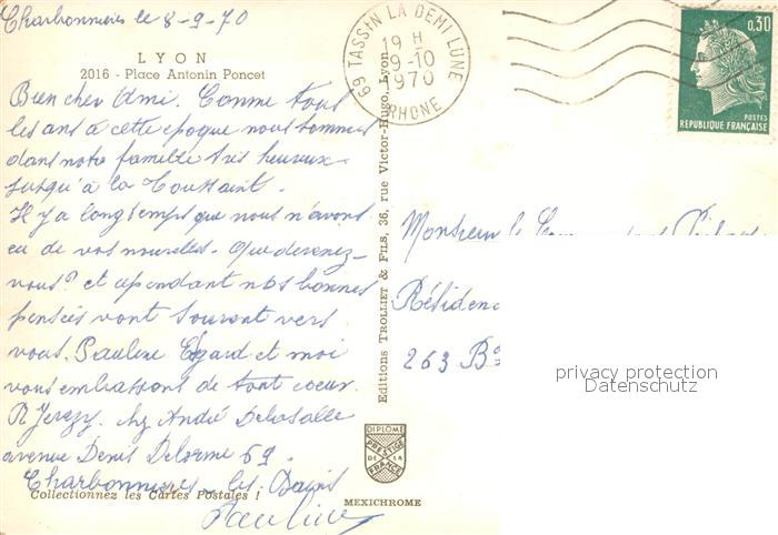 13660687 Lyon France Place Antonin Poncet postalisch gelaufen Erhaltung siehe scans [WerneD78] carte postale Wern Katcode 11170069169123