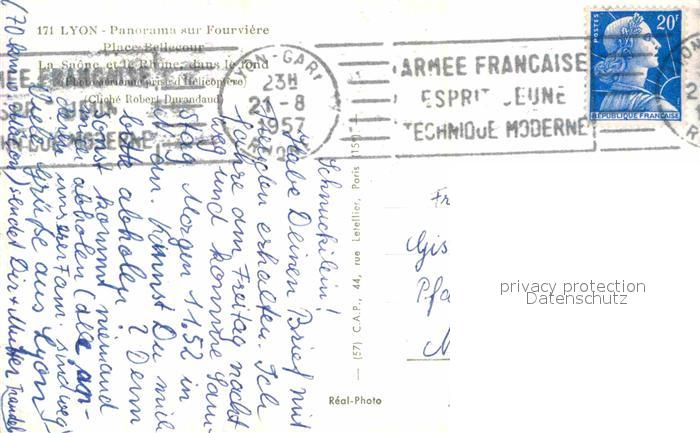 12757129 carte postale Lyon France Place Bellecour La Saone et le Rhone vue aerienne postalisch gelaufen Erhaltung siehe scans [FriedD77] KatCode: 11170069169123