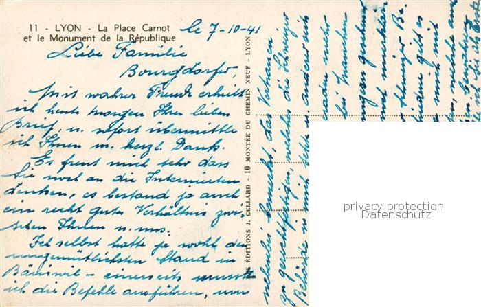 13794878 Lyon France Place Carnot Monument de la République postalisch nicht gelaufen Erhaltung siehe scans [FriedD77] Frie Katcode 11170069169123