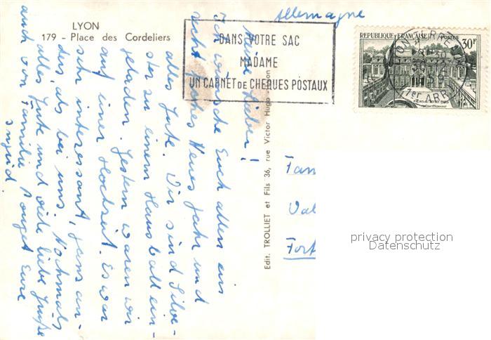 13287822 carte postale Lyon France Place des Cordeliers postalisch gelaufen Erhaltung siehe scans [PaolaD17] KatCode: 11170069169123