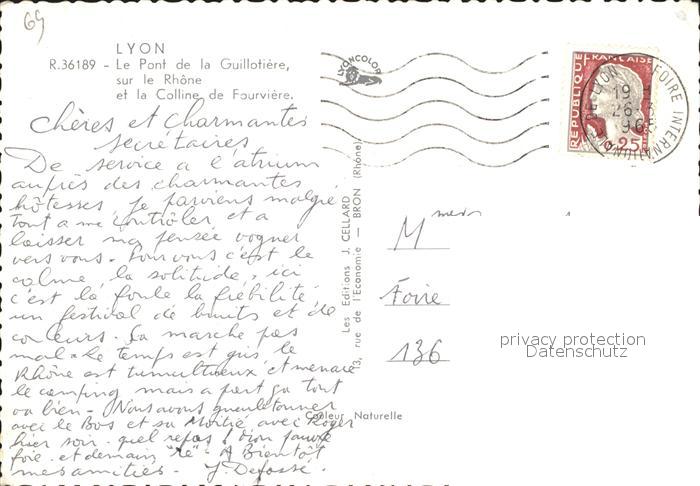 12263216 carte postale Lyon France Pont de la Guillotiere sur le Rhone Colline de Fourviere postalisch gelaufen Erhaltung siehe scans KatCode: 11170069169123