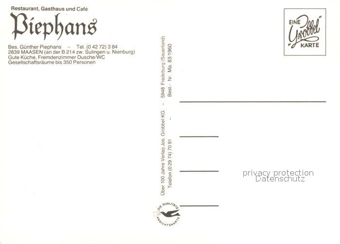 73323117 Maasen Restaurant Cafe Piephans Kegelbahn postalisch nicht gelaufen Erhaltung siehe scans [LiesaD40] KatCode: 11110003251024