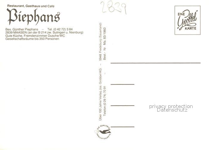 73087410 Maasen Restaurant Piephans postalisch nicht gelaufen Erhaltung siehe scans [NatalD47] KatCode: 11110003251024