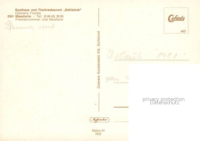 73863520 Maasholm Gasthaus und Fischrestaurant Schleieck postalisch nicht gelaufen Erhaltung siehe scans [WerneD78] KatCode: 11110001059142