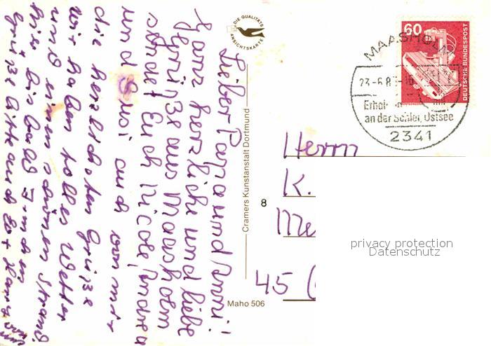 72679705 alte Postkarte Maasholm Hafen Abendstimmung Ostseestrand Oehe aeltestes Haus Denkmalschutz Petrikirche Ehrenmal Hauptstrasse postalisch gelaufen Erhaltung siehe scans [FriedD77] KatCode: 11110001059142