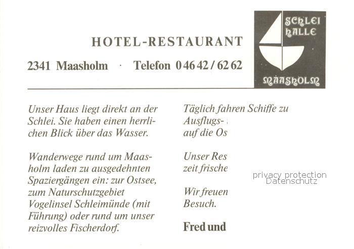 73653583 Maasholm Hotel Restaurant Schleihalle Fliegeraufnahme postalisch nicht gelaufen Werbekarte (keine Postkarte) Erhaltung siehe scans [WerneD78] KatCode: 11110001059142