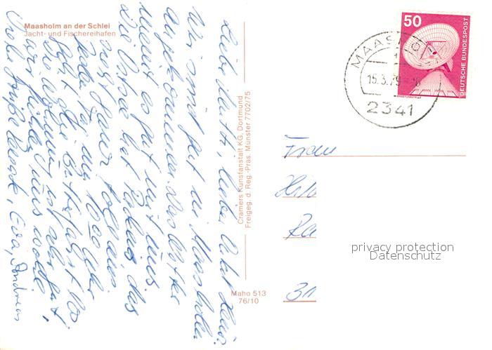 72950424 alte Postkarte Maasholm Jacht- Fischereihafen postalisch gelaufen Erhaltung siehe scans [NatalD47] KatCode: 11110001059142
