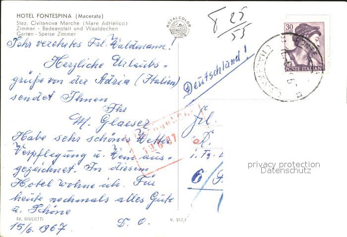 old postcard Macerata Hotel Fontespina postalisch gelaufen Erhaltung siehe scans