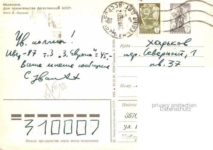 old postcard Machatschkala Regierungsgebaeude postalisch gelaufen Ganzsache (eingedruckte Briefmarke) Erhaltung siehe scans [NatalD47]