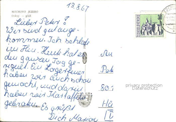 old postcard Machovo Jezero Doksy plaz postalisch gelaufen Erhaltung siehe scans