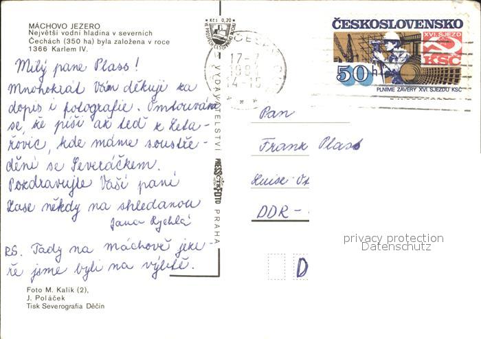 old postcard Machovo Jezero Panorama Strandpartie postalisch gelaufen Erhaltung siehe scans