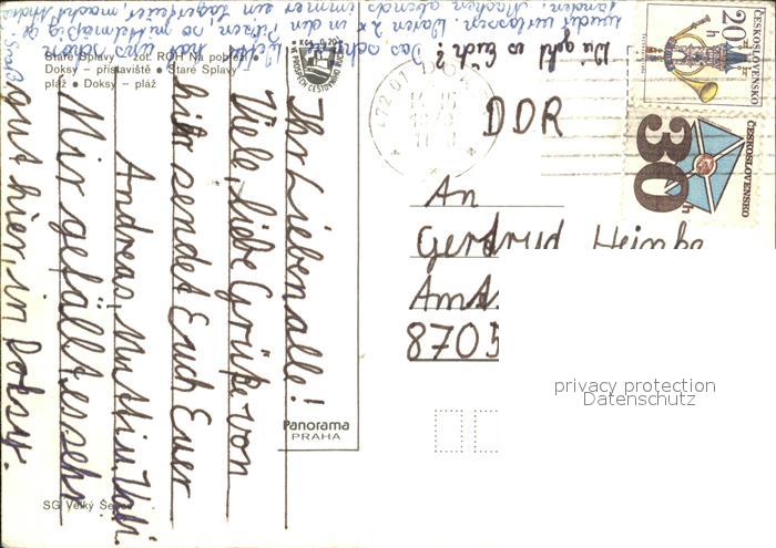 old postcard Machovo Jezero Stare Splavy Na pobrezi Doksy pristaviste Splavy plaz Doksy plaz postalisch gelaufen Erhaltung siehe scans