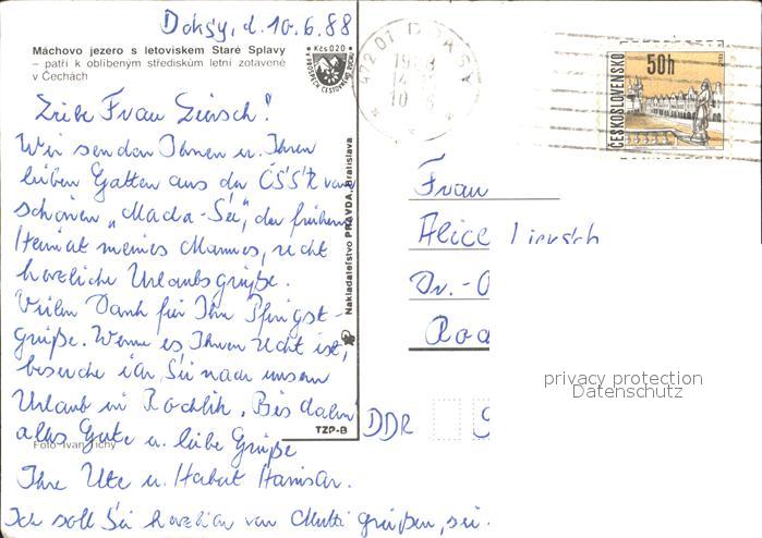 old postcard Machovo Jezero Strand Camping postalisch gelaufen Erhaltung siehe scans