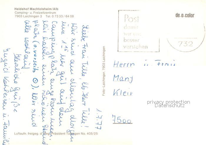73600024 alte Postkarte Machtolsheim Camping- und Freizeitzentrum Heidehof Fliegeraufnahme postalisch gelaufen Erhaltung siehe scans [FriedD77] KatCode: 11110008425071