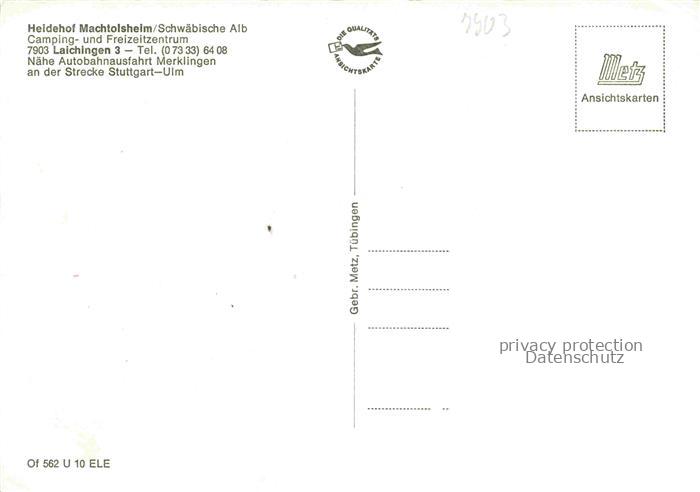 74049865 Machtolsheim Heidehof Camping und Freizeitzenrum Schwaebische Alb postalisch nicht gelaufen Erhaltung siehe scans [FriedD77] KatCode: 11110008425071
