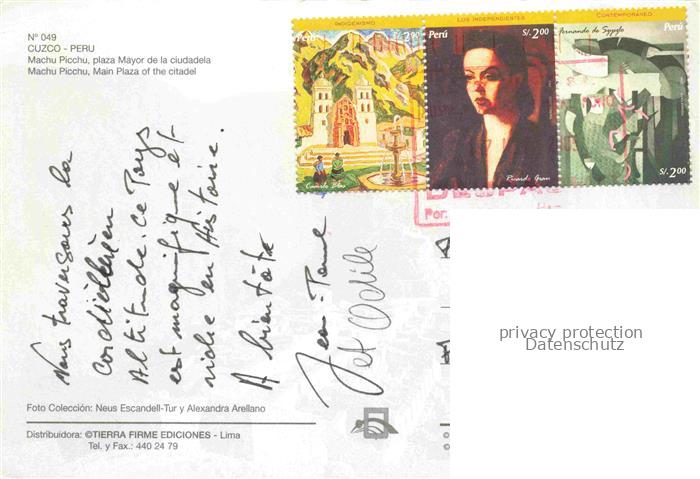 74015095 old postcard Machu Picchu Plaza Major de la ciudadela postalisch gelaufen Erhaltung siehe scans [FriedD77] KatCode: 17120