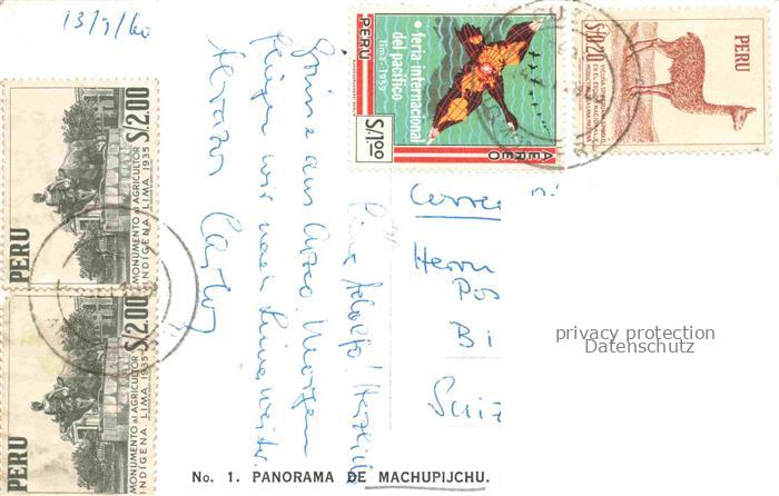 74128474 old postcard Machupijchu Machupicchu Machu Picchu Peru Panorama postalisch gelaufen Erhaltung siehe scans [FriedD77] KatCode: 17120