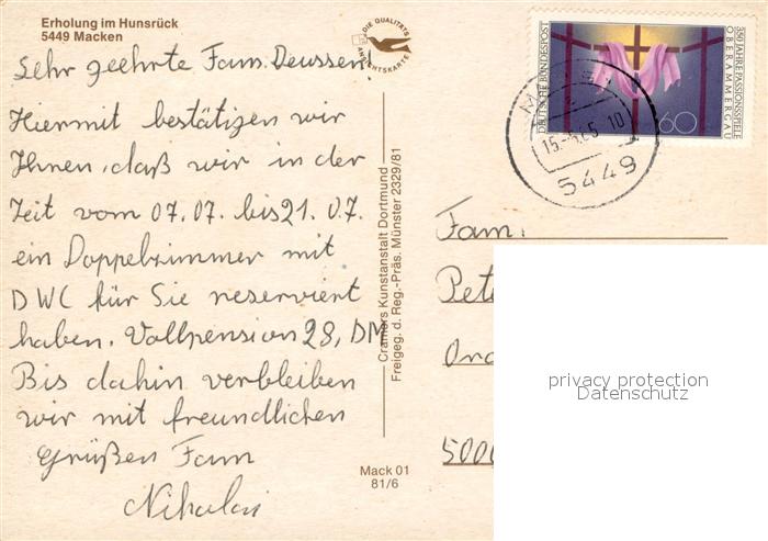 73663733 Macken Mayen-Koblenz Rheinland-Pfalz Fliegeraufnahme Vorderhunsrueck postalisch gelaufen Erhaltung siehe scans [LiesaD40] alte Postkarte Lies Katcode 11110007137215