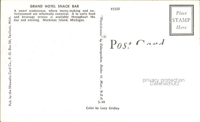 72167363 Mackinac Island Grand Hotel Snack Bar postalisch nicht gelaufen Erhaltung siehe scans KatCode: 14140240000000