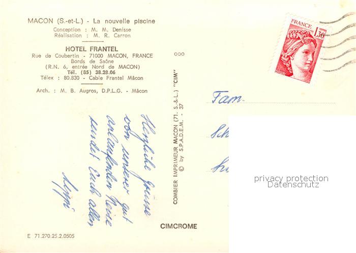 13236929 carte postale Macon 71 La nouvelle piscine postalisch gelaufen Erhaltung siehe scans [KathaD81] KatCode: 11170071571270