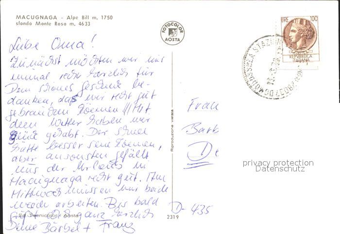 old postcard Macugnaga sfondo monte rosa Berge postalisch gelaufen Erhaltung siehe scans