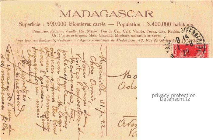 74014949 old postcard Madagascar Madagaskar Vallée de la Vohitra postalisch gelaufen Erhaltung siehe scans [FriedD77] KatCode: 18270