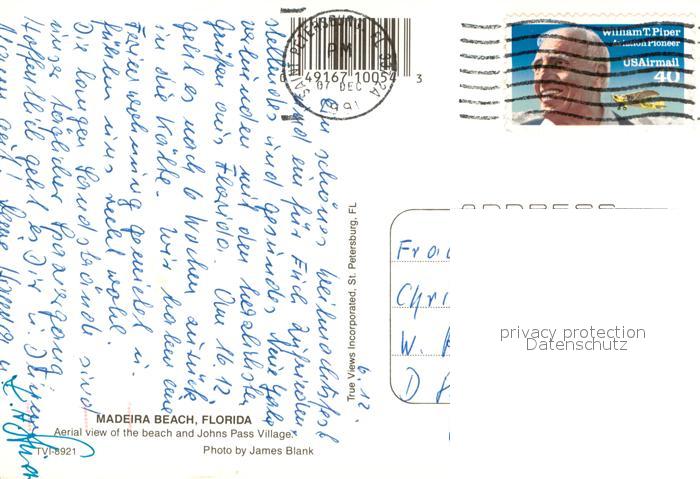 73718978 old postcard Madeira Beach USA Fliegeraufnahme postalisch gelaufen Erhaltung siehe scans [WerneD78] KatCode: 14140110000000