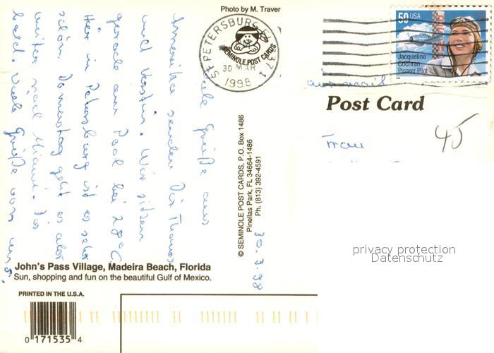 73707231 old postcard Madeira Beach USA Johns Pass Village Air view postalisch gelaufen Erhaltung siehe scans [WerneD78] KatCode: 14140110000000