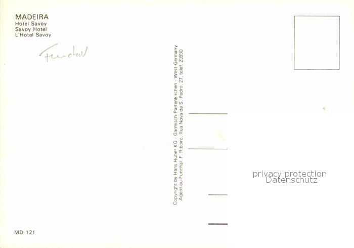 Madeira Portugal Hotel Savoy postalisch nicht gelaufen Erhaltung siehe scans [WerneD78]