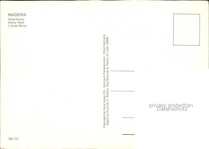 Madeira Portugal Hotel Savoy postalisch nicht gelaufen Erhaltung siehe scans