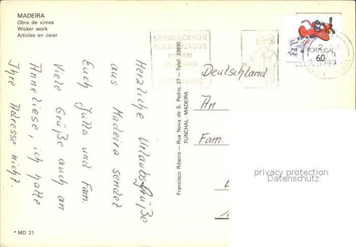 old postcard Madeira Portugal Obra de vimes Korbmacher postalisch gelaufen Erhaltung siehe scans