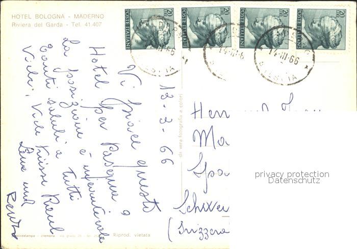 old postcard Maderno Lago di Garda Hotel Bologna postalisch gelaufen Erhaltung siehe scans