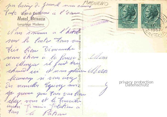 74091243 old postcard Maderno Lago di Garda IT Hotel Benaco Lungolago postalisch gelaufen Erhaltung siehe scans [FriedD77] KatCode: 11240