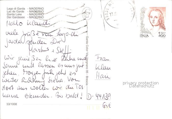 old postcard Maderno Lago di Garda Kirche Hafen postalisch gelaufen Erhaltung siehe scans