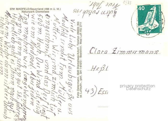 72896423 alte Postkarte Madfeld Naturpark Diemelsee Fliegeraufnahme postalisch gelaufen Erhaltung siehe scans [LiesaD40] KatCode: 11110005958012