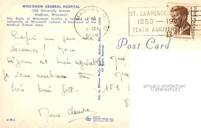 73057268 old postcard Madison Wisconsin General Hospital postalisch gelaufen Erhaltung siehe scans [WerneD78] KatCode: 14140520000000