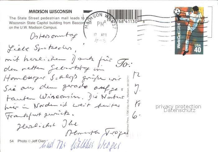 72499944 old postcard Madison Wisconsin State Street postalisch gelaufen Erhaltung siehe scans KatCode: 14140520000000