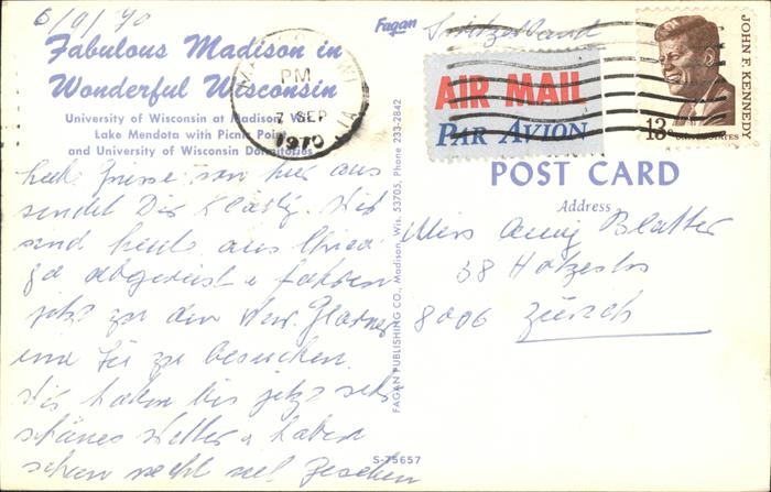 11491774 old postcard Madison Wisconsin University of Wisconsin Lake Mendota postalisch gelaufen Erhaltung siehe scans KatCode: 14140520000000