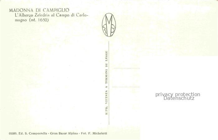 Madonna di Campiglio 1550m Sankt Maria im Pein Trentino IT Albergo Zeledria al Campo di Carlomagno postalisch nicht gelaufen Erhaltung siehe scans [WerneD78] Wern Katcode 11240