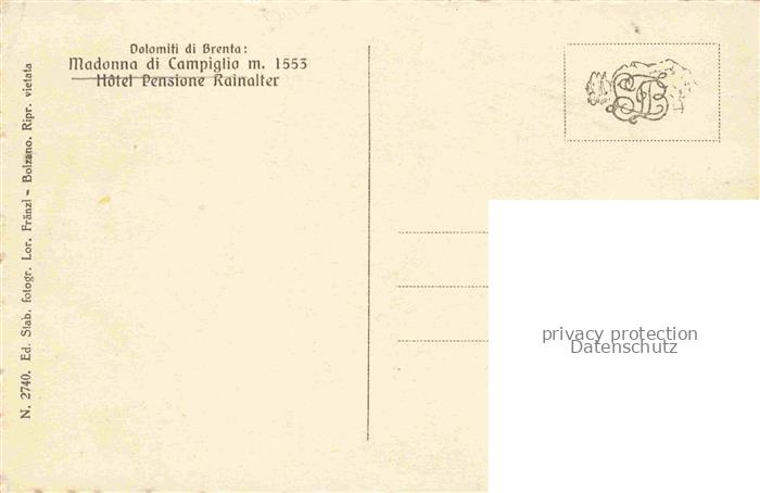 74023384 Madonna di Campiglio 1550m Sankt Maria im Pein Trentino IT Hotel Pensione Rainalter postalisch nicht gelaufen Erhaltung siehe scans [WerneD78] KatCode: 11240
