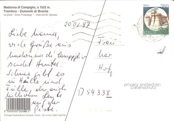 old postcard Madonna di Campiglio vista dal M Spinale Dolomiti di Brenta Wintersportplatz Dolomiten postalisch gelaufen Erhaltung siehe scans