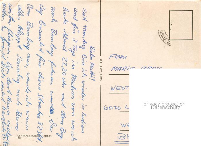 13598638 Madras Tamil Nadu Central Station postalisch gelaufen Erhaltung siehe scans [WerneD78] old postcard Wern Katcode 12120