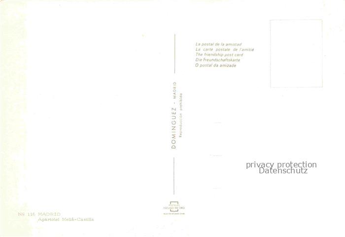 74084784 MADRID ES Apart Hotel Melia Castilla postalisch nicht gelaufen Erhaltung siehe scans [WerneD78] KatCode: 11510