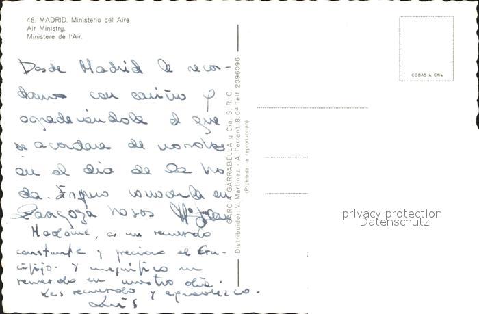 Madrid Spain Air Ministry postalisch nicht gelaufen Erhaltung siehe scans