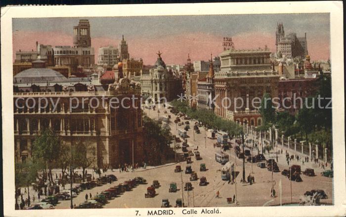old postcard Madrid Spain Calle Alcalà postalisch gelaufen Erhaltung siehe scans