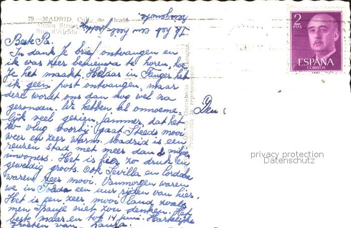 old postcard Madrid Spain Calle de Alcala postalisch gelaufen Erhaltung siehe scans